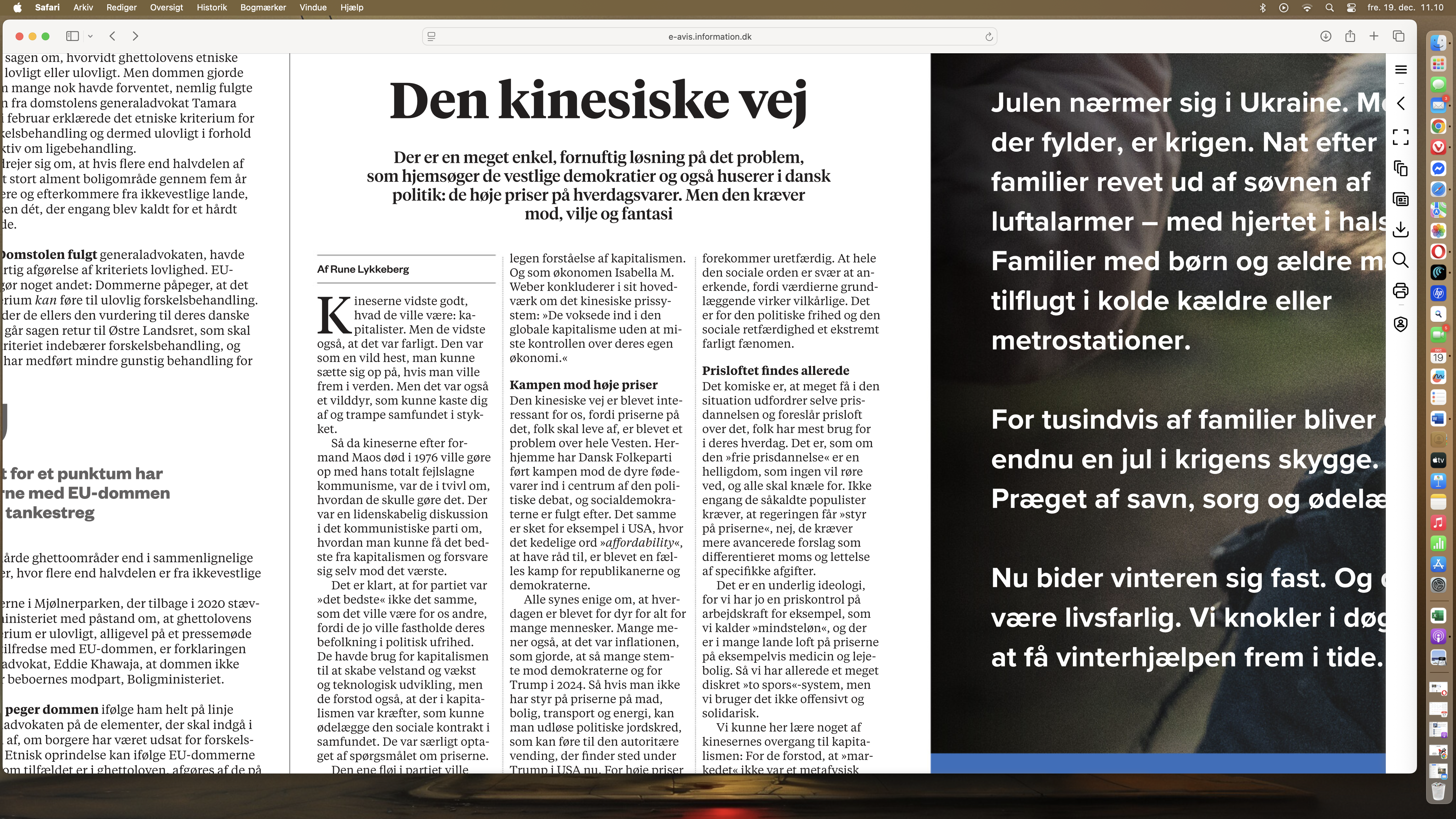 Den kinesiske vej er blevet interessant for os, fordi priserne på det, folk skal leve af, er blevet et problem over hele Vesten. Herhjemme har Dansk Folkeparti ført kampen mod de dyre fødevarer ind i centrum af den politiske debat, og socialdemokraterne er fulgt efter. Det samme er sket for eksempel i USA, hvor det kedelige ord »affordability «, at have råd til, er blevet en fælles kamp for republikanerne og demokraterne.