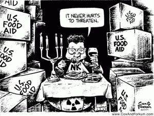 Den resterende million er de væbnede styrker, som er Kims livsforsikring. USA’s bekymring er, at fødevarebistanden går til Kims gigantiske officerskorps og ikke til de virkelig nødlidende. Dilemmaerne er uhyggelige, for her er der ingen ‘ libysk’ model, der kan bruges. ‘ Humanitære’ bombetogter så tæt på Kinas og Sydkoreas grænser? Nej, vel?.