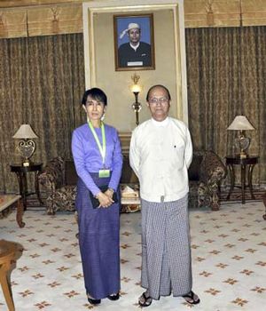 For en uge siden rejste oppositionslederen Aung San Suu Kyi til Naypyidaw, den nyopførte hovedstad 330 kilometer nord for Yangon (tidl. Rangoon), og mødtes med landets præsident, Thein Sein. Dagen før mødet holdt præsidenten en tale med opfordringer til landets etniske oprørsgrupper om at indlede reelle forhandlinger efter et halvt århundredes partisankrig. Efter sin tiltrædelse for fem måneder siden har styret inviteret repræsentanter for Den Internationale Valutafond (IMF) til landet for at drøfte reform af landets pengesystem.