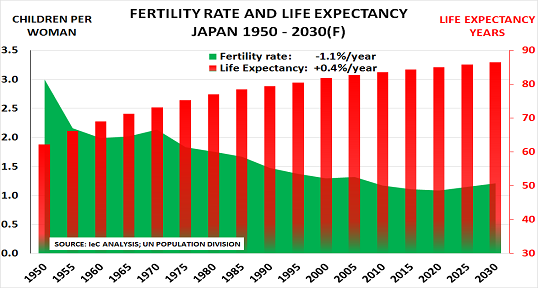 Seneste tal fra den centrale statistikmyndighed kom i april og bekræftede det velkendte dystre billede: At i løbet af de kommende 50 år reduceres Japans befolkning med en tredjedel.