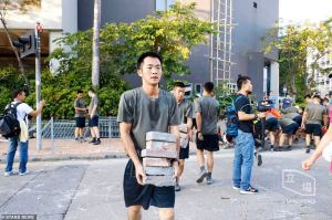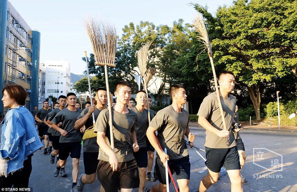 Fem til seks snese kinesiske soldater indfandt sig på Hongkongs gader, iført arbejdshandsker, sorte shorts, T-shirts og udrustet med koste, spande og skovle. De begyndte at rydde op, så trafikken kunne normaliseres.