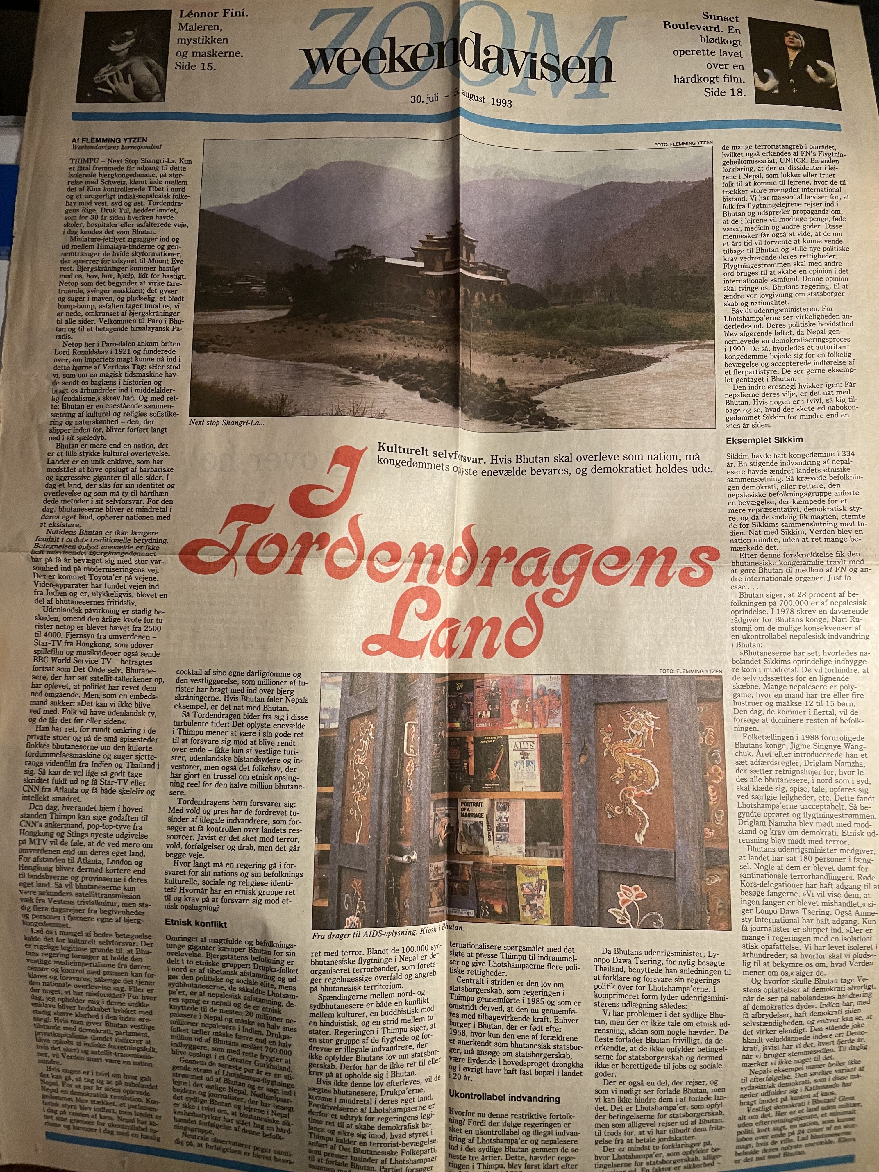 I foråret 1993 besøgte jeg Nepal og Bhutan som udviklingskonsulent. Weekendavisen publicerede 30. juli samme år min reportage fra Bhutan, som dengang kun havde et ganske beskedent samkvem med omverdenen. Siden da er Bhutan blevet et meget eftertragtet om end dyrt rejsemål.